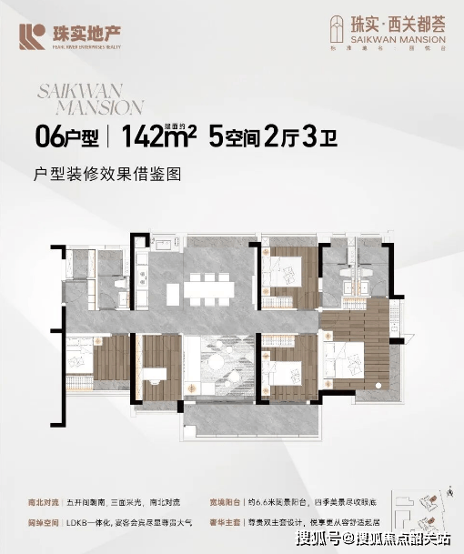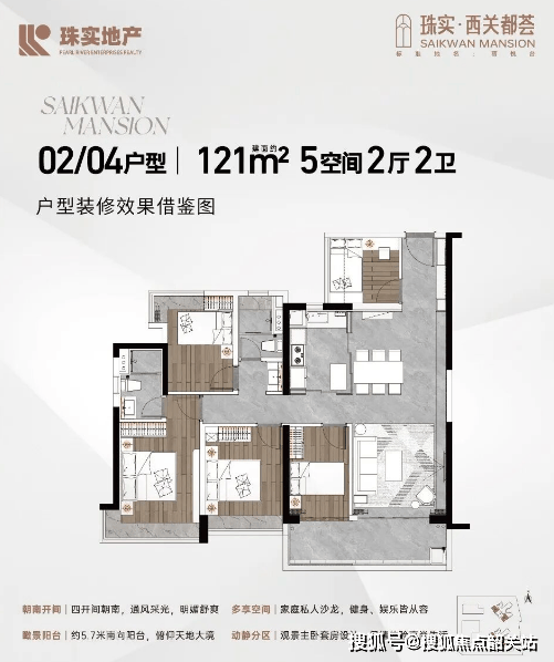 面向逃求极致糊口质量的改善家庭,珠实西关都荟推出了建面约142㎡的五房大宅。这款户型采用了大宅结构,空间宽阔,功能分区完美,可以或许满脚多代同堂的栖身需求。五个房间的设定,让每个孩子都有的成漫空间,让白叟有恬静的休养,让仆人有宽敞的衣帽间和书房。